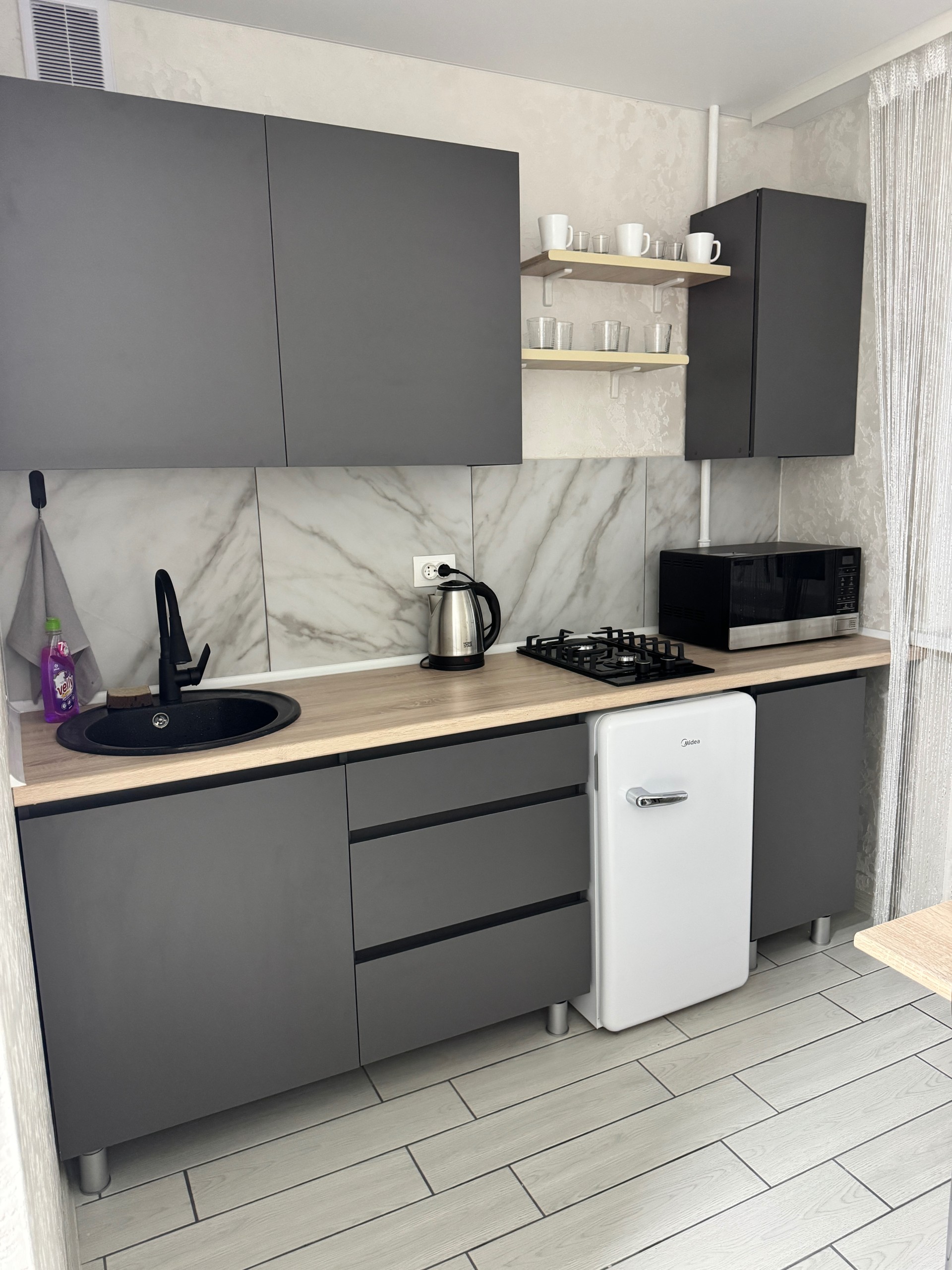 Беспроводной интернет Wi-Fi, Телевизор, Домофон, Полотенца, Замок на двери в спальню, Кабельное/спутниковое телевидение, Постельное бельё, Мыло, Туалетная бумага, Кофе, чай, Утюг, Фен, Шампунь, Открытый балкон/лоджия, Душевая кабинка, Холодильник, Микроволновая печь, Посуда